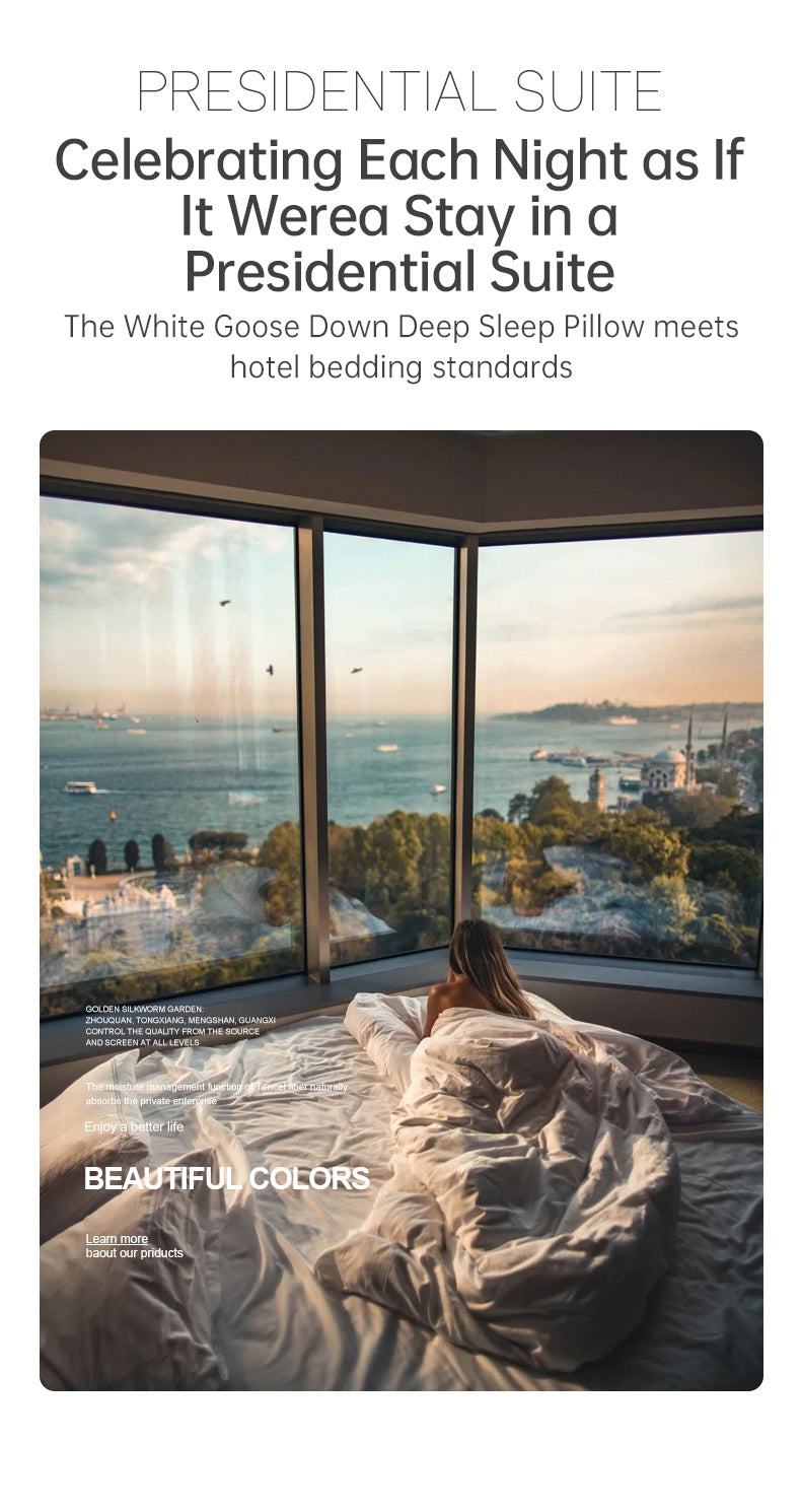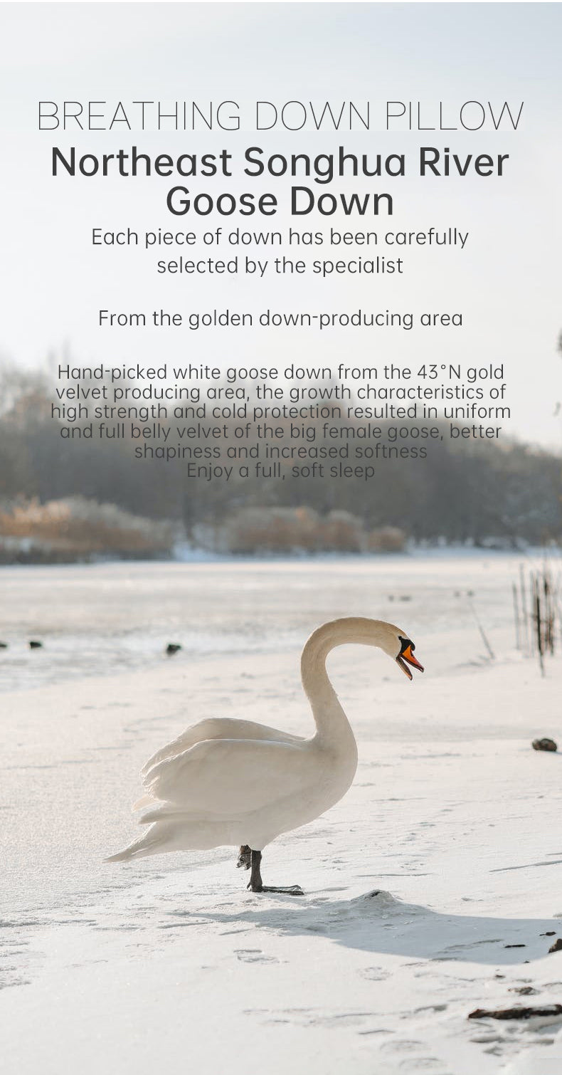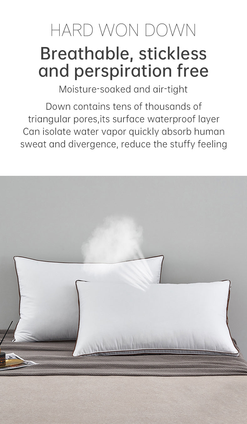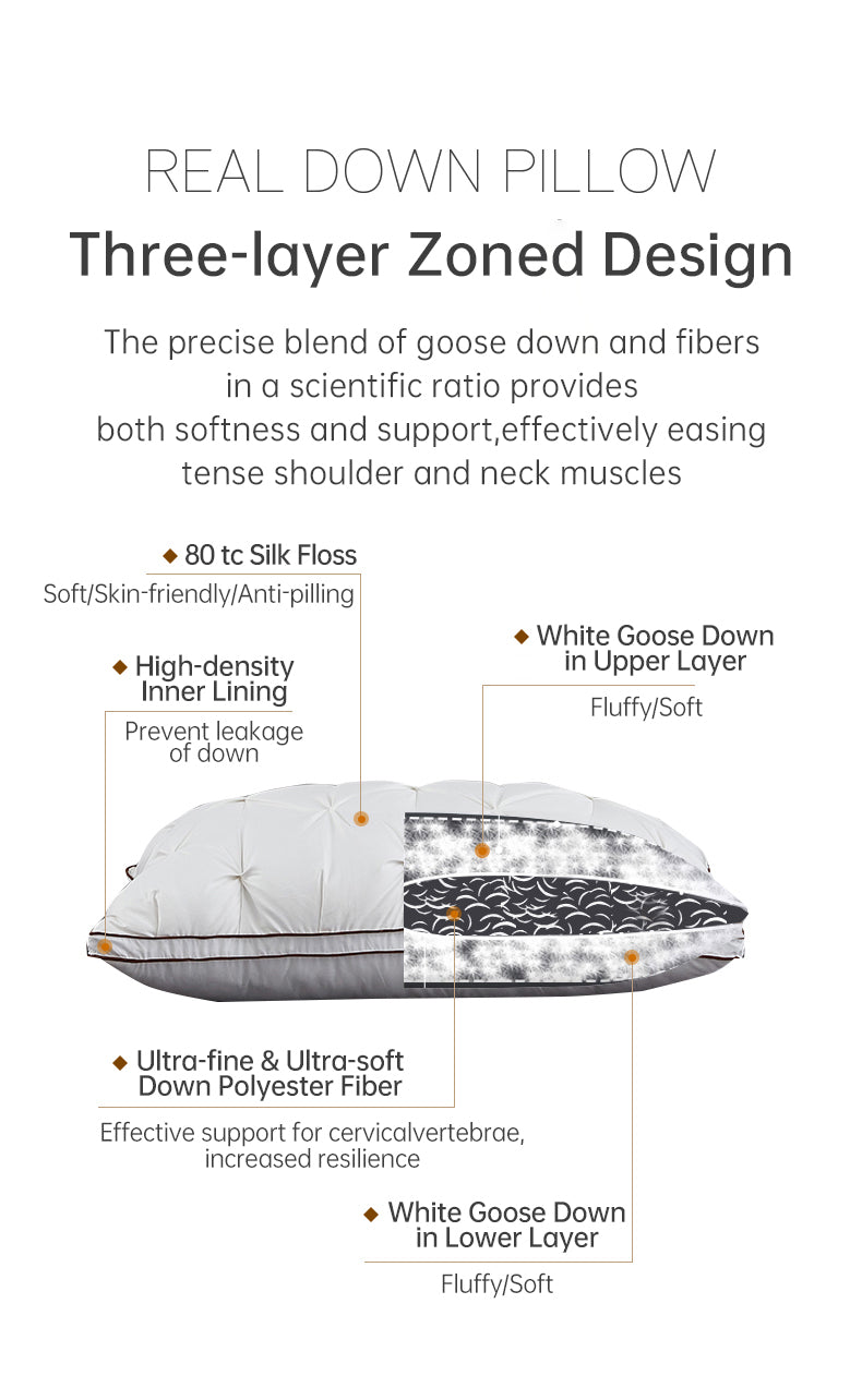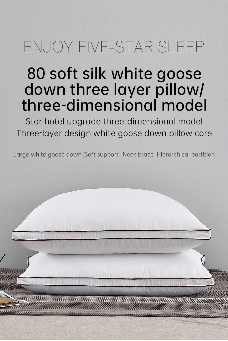 80-count three-layer pillow, goose down pillow, down pillow suitable for stomach sleeping, standard bed pillow with 700+ fill power